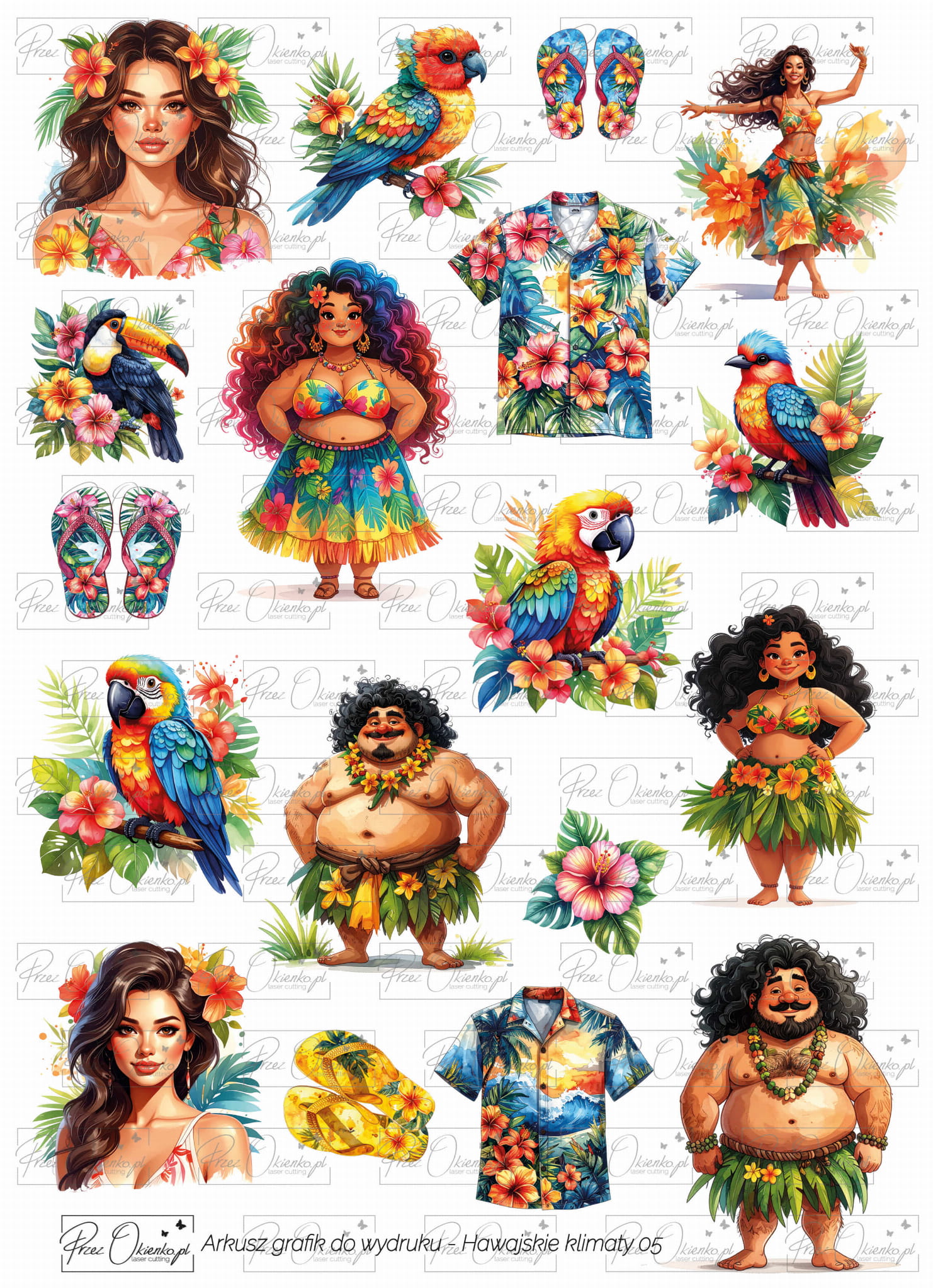 Cyfrowy arkusz grafik PNG – Hawajskie klimaty