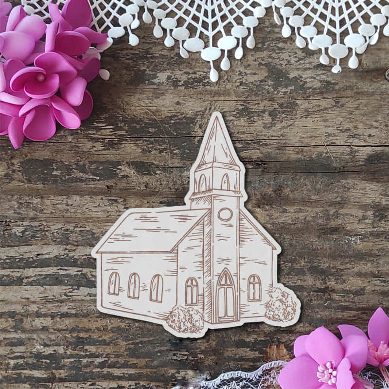 Grawerowana tekturka „Kościół” to uroczy dodatek do ślubnych albumów, kartek okolicznościowych czy exploding boxów. Wykonana z trwałej beermaty, precyzyjnie wycięta, w rozmiarze ok. 6,7 × 7,3 cm, idealnie komponuje się z innymi dekoracjami.