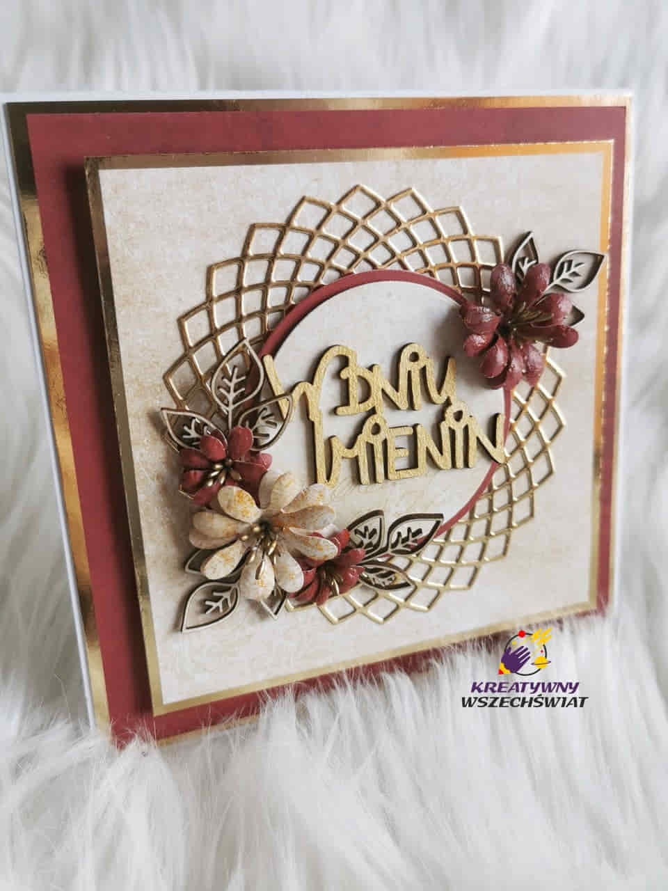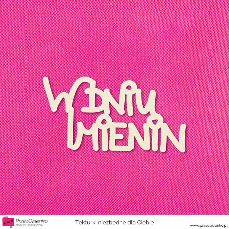 Napis “W dniu imienin” sprawdzi się idealnie na kartkach, exploding boxach czy w albumach. Jedną z takich kartek wykonała dla nas Wiki z Kreatywnego Wszechświata.