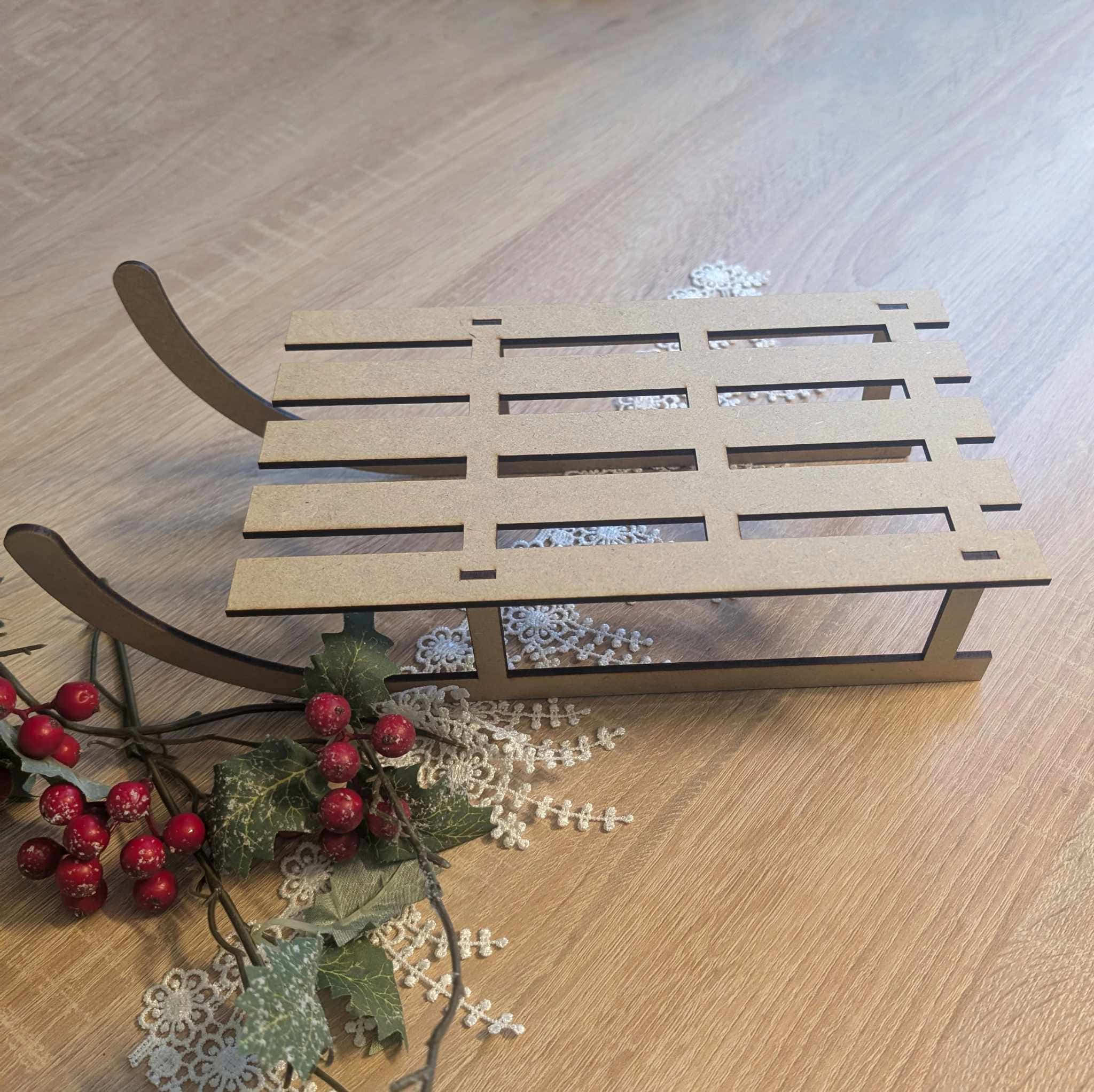 Świąteczna baza z płyty HDF w kształcie sanek