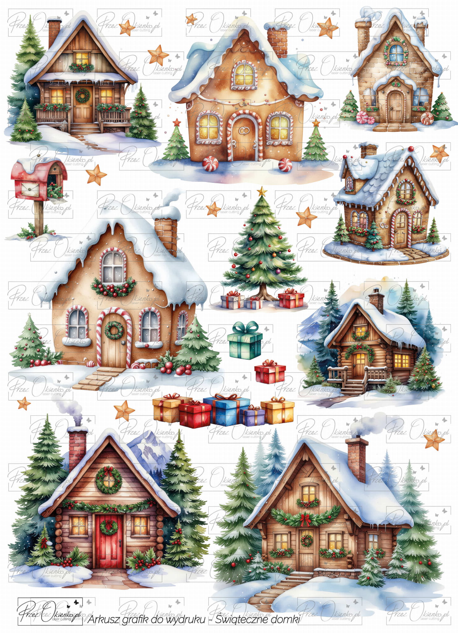 Zanurz się w bajkowym świecie, w którym każdy domek pachnie piernikami, rozbrzmiewa świąteczną muzyką i migocze blaskiem lampek! Arkusz cyfrowy „Świąteczne domki” to kolekcja ilustracji, które przenoszą prosto do zimowej, magicznej krainy.