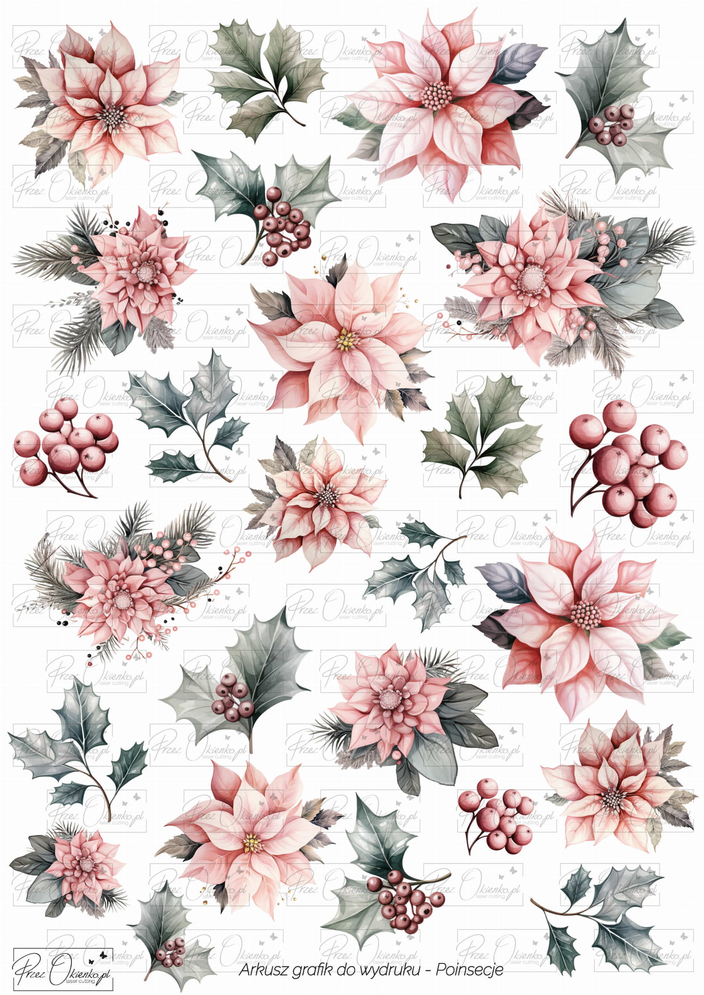 Świąteczne życzenia - poinsecje - arkusz cyfrowy