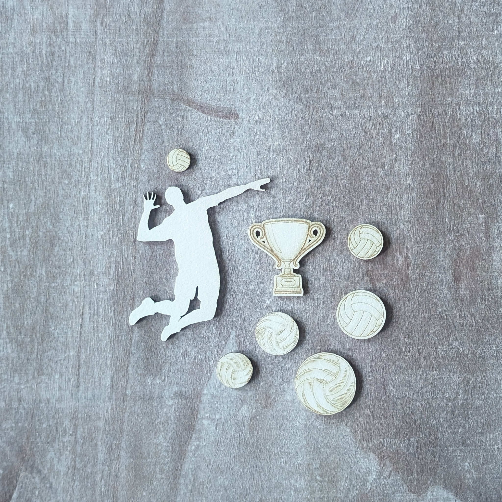 Sportowe emocje zamknięte w wyjątkowym zestawie tekturek dla fanów siatkówki! Zestaw zawiera dynamiczną sylwetkę siatkarza w ruchu, 6 piłek z precyzyjnym grawerem oraz puchar, który doskonale sprawdzi się jako symbol zwycięstwa.