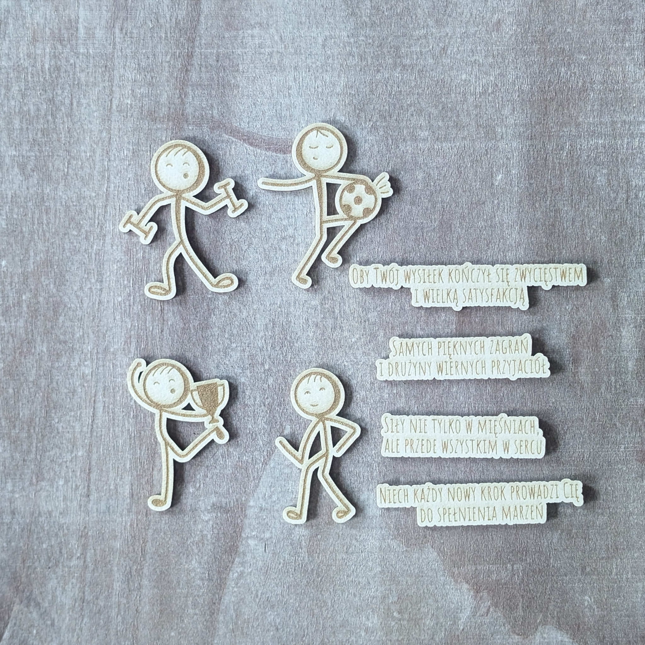 Zestaw tekturek „Sportowe życzenia” – 4 ludziki z grawerem + napisy